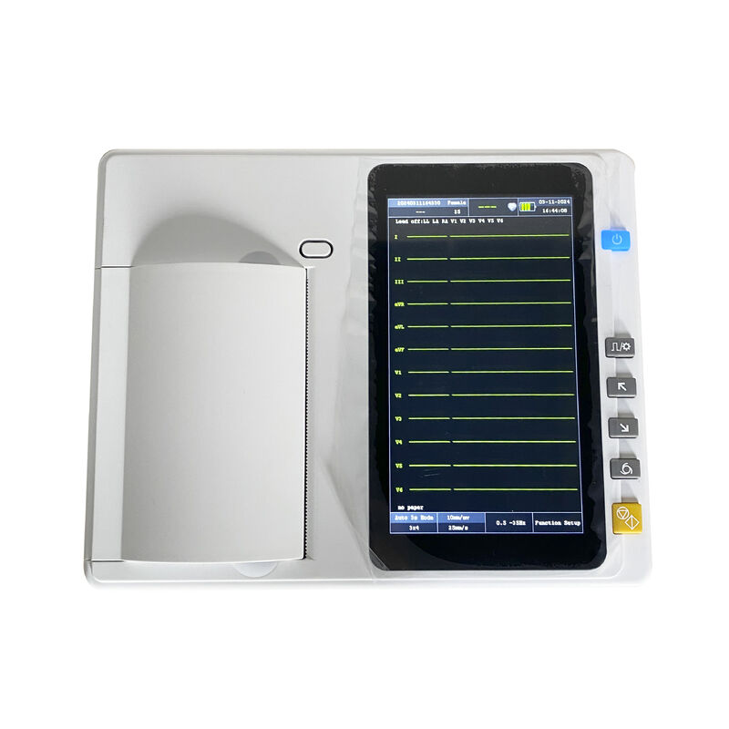 This ecg monitor hospital is a digital electrocardiograph and ecg monitoring device that has a 7 inch touch screen display and a thermal array printer recording mode. It is designed for use in hospitals and clinics, with audible/visible alarms and the ability to detect body health. The machine uses 110mmx20m thermal roll paper and is available in light, medium, or heavy weight. It is also quality certified with ISO standards.